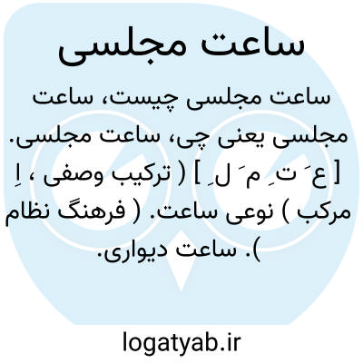 ساعت مجلسی. [ ع َ ت ِ م َ ل ِ ] ( ترکیب وصفی، اِ مرکب ) نوعی ساعت. ( فرهنگ نظام ). ساعت دیواری. ( استینگاس ). ساعت دیواری. ساعت دیوارکوب. رجوع به ساعت دیواری شود.