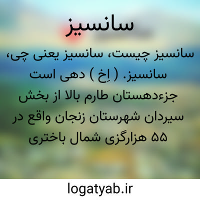 سانسیز. ( اِخ ) دهی است جزءدهستان طارم بالا از بخش سیردان شهرستان زنجان واقع در 55 هزارگزی شمال باختری سیردان و سر راه عمومی طارم. هوای آن معتدل و دارای 266 تن سکنه است. آب آنجااز رودخانه کیا تأمین میشود. محصول آن غلات، پنبه، انار، گردو و شغل اهالی زراعت، گلیم، جاجیم بافی و راه آن مالرو است. ( از فرهنگ جغرافیایی ایران ج 2 ).