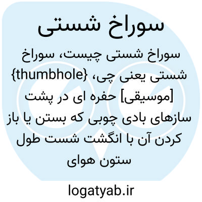 {thumbhole} [موسیقی] حفره ای در پشت سازهای بادی چوبی که بستن یا باز کردن آن با انگشت شست طول ستون هوای مرتعش را تغییر می دهد