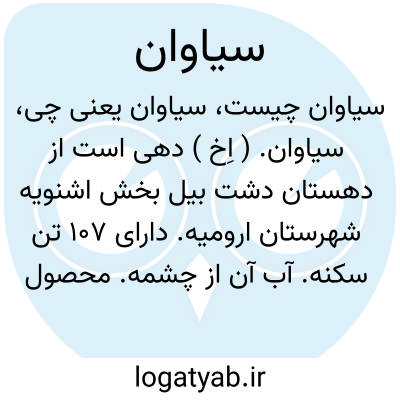 سیاوان. ( اِخ ) دهی است از دهستان دشت بیل بخش اشنویه شهرستان ارومیه. دارای 107 تن سکنه. آب آن از چشمه. محصول آنجا غلات، توتون. شغل اهالی زراعت و گله داری است. ( از فرهنگ جغرافیائی ایران ج 4 ).