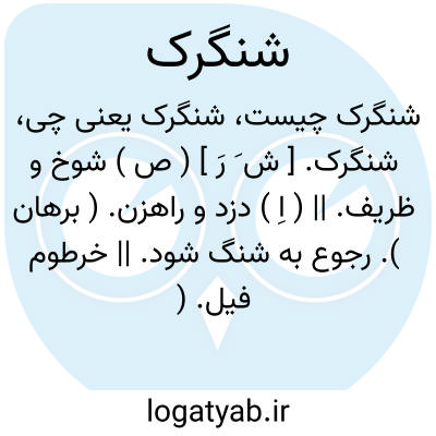 شنگرک. [ ش َ رَ ] ( ص ) شوخ و ظریف. || ( اِ ) دزد و راهزن. ( برهان ). رجوع به شنگ شود. || خرطوم فیل. ( برهان ). رجوع به شنگ شود.