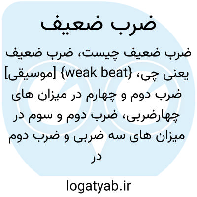 {weak beat} [موسیقی] ضرب دوم و چهارم در میزان های چهارضربی، ضرب دوم و سوم در میزان های سه ضربی و ضرب دوم در میزان های دوضربی