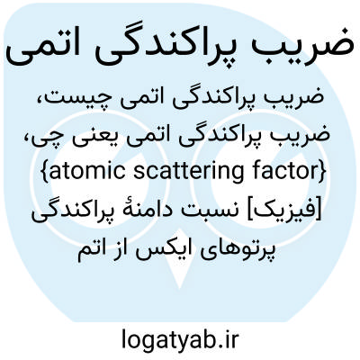 {atomic scattering factor} [فیزیک] نسبت دامنۀ پراکندگی پرتوهای ایکس از اتم در راستایی خاص به دامنۀ پراکندگی از یک الکترون، وقتی که در مرکز اتم در نظر گرفته شود متـ. ضریب شکل اتمی atomic form factor