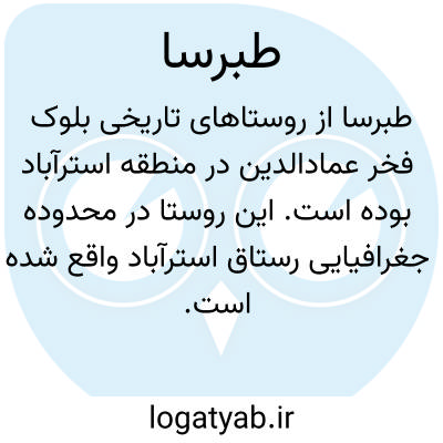 طبرسا. [ طَ ب َ ] ( اِخ ) یکی از دهات بلوک فخر عمادالدین از توابع استرآبادرستاق که در وقفنامه مورخ سال 989 هَ. ق. / 1581 م. در تصرف سادات شیرنگ میباشد، نامی از آن برده شده است. ( سفرنامه مازندران و استرآباد رابینو ص 127 ).