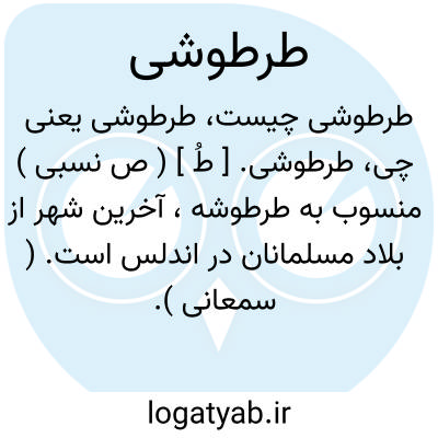 طرطوشی. [ طُ ] ( ص نسبی ) منسوب به طرطوشه، آخرین شهر از بلاد مسلمانان در اندلس است. ( سمعانی ).