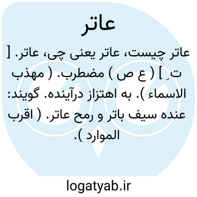 عاتر. [ ت ِ ] ( ع ص ) مضطرب. ( مهذب الاسماء ). به اهتزاز درآینده. گویند: عنده سیف باتر و رمح عاتر. ( اقرب الموارد ). || فرج دروا کرده از شهوت. ( تاج العروس ) ( منتهی الارب ). فرج گشاده از تیزی شهوت. ( منتهی الارب ).