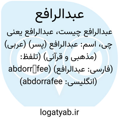 اسم: عبدالرافع (پسر) (عربی) (مذهبی و قرآنی) (تلفظ: abdorrāfee) (فارسی: عبدالرافع) (انگلیسی: abdorrafee)