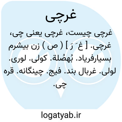 غرچی. [ غ َ رَ ] ( ص ) زن بیشرم بسیارفریاد. بُهصُلة. کولی. لوری. لولی. غربال بند. فیج. چینگانه. قره چی.