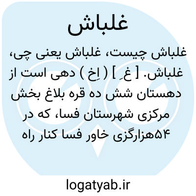 غلباش. [ غ ِ ] ( اِخ ) دهی است از دهستان شش ده قره بلاغ بخش مرکزی شهرستان فسا، که در 54هزارگزی خاور فسا کنار راه فرعی فسا به داراکویه قرار دارد. در جلگه واقع است و هوایی معتدل دارد. سکنه آن 400 تن است. آب آن از چاه تأمین میشود، محصول آن غلات، پنبه، حبوبات و شغل اهالی زراعت، قالی و گلیم بافی است. ساکنان آن از طایفه اینانلو هستند. ( از فرهنگ جغرافیایی ایران ج 7 ).