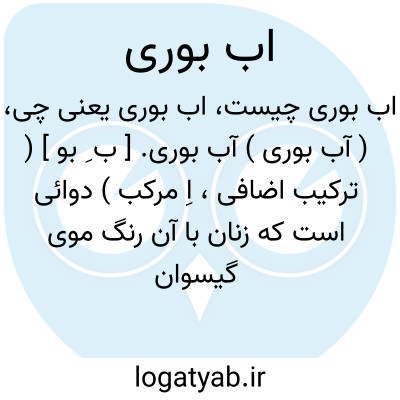 ( آب بوری ) آب بوری. [ ب ِ بو ] ( ترکیب اضافی، اِ مرکب ) دوائی است که زنان با آن رنگ موی گیسوان بگردانند برنگ خرمایی روشن.