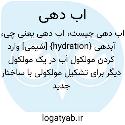 {hydration} [شیمی] وارد کردن مولکول آب در یک مولکول دیگر برای تشکیل مولکولی با ساختار جدید