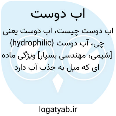 {hydrophilic} [شیمی، مهندسی بسپار] ویژگی ماده ای که میل به جذب آب دارد