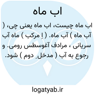 ( آب ماه ) آب ماه. ( اِ مرکب ) ماه آب سریانی، مرادف آغوسطس رومی. و رجوع به آب ( مدخل ِ دوم ) شود.
