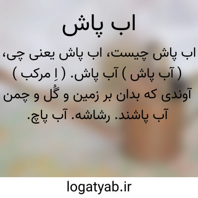 ( آب پاش ) آب پاش. ( اِ مرکب ) آوندی که بدان بر زمین و گُل و چمن آب پاشند. رشاشه. آب پاچ.