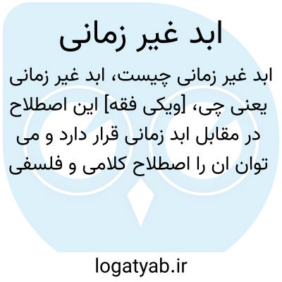 [ویکی فقه] این اصطلاح در مقابل ابد زمانی قرار دارد و می توان ان را اصطلاح کلامی و فلسفی نامید. ابد غیر زمانى،عبارت است از مطلق یا چیزى که بی نهایت باشد ابد به این معنا در مقابل زمان است. منبع خاتمی، احمد،فرهنگ علم کلام،ص۴۶ رده های این صفحه: کلام اسلامی | واژه شناسی