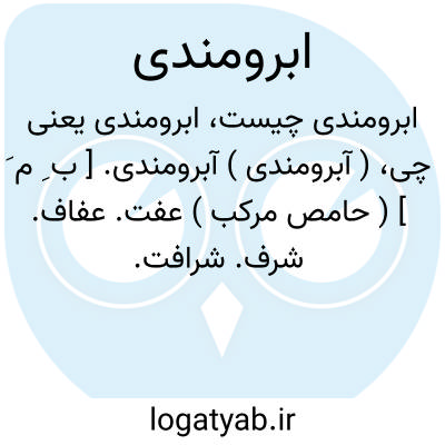 ( آبرومندی ) آبرومندی. [ ب ِ م َ ] ( حامص مرکب ) عفت. عفاف. شرف. شرافت.