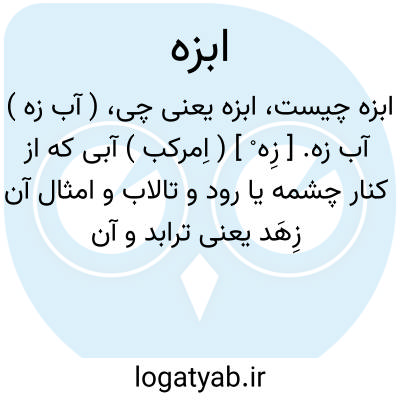 ( آبزه ) ( اسم ) آبی که از کنار چشمه رود تالاب و امثال آن زهد یعنی تراود زهاب.