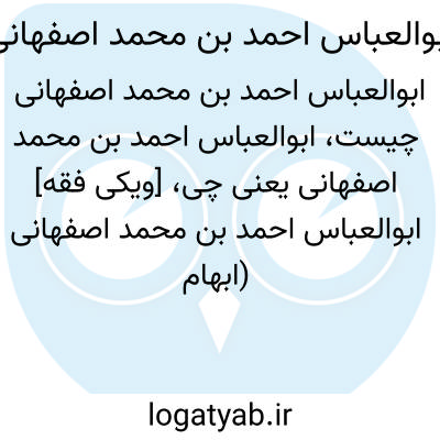 [ویکی فقه] ابوالعباس احمد بن محمد اصفهانی (ابهام زدایی). ابوالعباس احمد بن محمد اصفهانی ممکن است اشاره به اشخاص و شخصیت های ذیل باشد: • ابن دکه ابوالعباس احمد بن محمد اصفهانی، از محدّثین اصفهان در قرن چهارم هجری• ابوالعباس احمد بن محمد خشاب مدینی اصفهانی، از محدّثین قرن چهارم هجری در اصفهان• ابوالعباس احمد بن محمد ضریر وذنکابادی اصفهانی، از محدّثین اصفهان در قرن چهارم هجری• ابوالعباس احمد بن محمد فافا اصفهانی، از محدّثین اصفهان در قرن سوم هجری• ابوالعباس احمد بن محمد جیرانی فرسانی اصفهانی، از محدّثین اصفهان در قرن سوم و چهارم هجری• ابوالعباس احمد بن محمد بشرویه اصفهانی، از محدّثین قرن ششم هجری در اصفهان• ابوالعباس احمد بن محمد طیرایی اصفهانی، از محدّثان اصفهان• ابوالعباس احمد بن محمد عارف صوفی اصفهانی، از مشایخ صوفیّه اصفهان در قرن نهم هجری• ابوالعباس احمد بن ابی جعفر مافروخی اصفهانی، از محدّثین قرن چهارم هجری در اصفهان• ابوالعباس احمد بن محمد رنانی اصفهانی، از محدّثین و قاریان قرن پنجم هجری در اصفهان• ابوالعباس احمد بن محمد فروه اصفهانی، از محدّثین اصفهان• ابوالعباس احمد بن محمود مدینی ثقفی وذنکابادی، از محدّثین قرن سوم و چهارم هجری در اصفهان