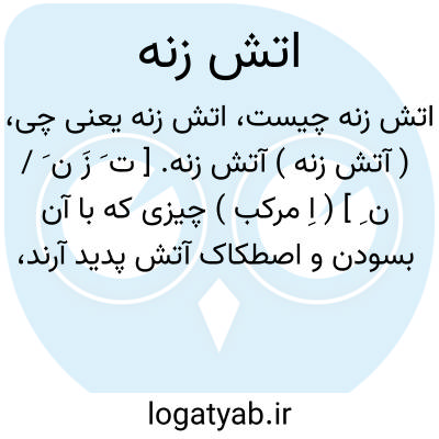 ( آتش زنه ) آتش زنه. [ ت َ زَ ن َ / ن ِ ] ( اِ مرکب ) چیزی که با آن بسودن و اصطکاک آتش پدید آرند، خواه از دو چوب باشد که زبرین را زند و زیرین را زنده گویند، و خواه از آهن و سنگ بود که آن را سنگ و چخماق خوانند. زند و زنده. قداحه. مقدحه. چخماق: