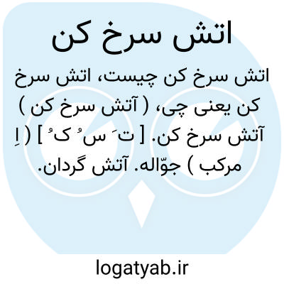 ( آتش سرخ کن ) ( اسم ) محفظ. کوچک سیمی که در آن چند قطعه آتش و زغال نهند و در هوا چرخانند تامشتعل گردد آتش چرخان آتش سرخ کن.
