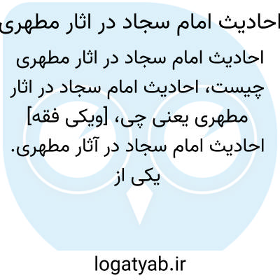 [ویکی فقه] احادیث امام سجاد در آثار مطهری. یکی از محورهای اصلی آثار شهید مطهری و نوشته های وی به احادیث ائمه معصومین علیهم السلام مربوط می شود. در این مختصر تلاش شده است که احادیث امام سجاد علیه السلام در آثار شهید مطهری بیان شود.