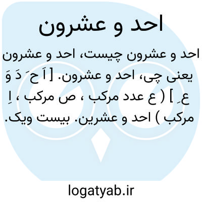 احد و عشرون. [ اَ ح َ دَ وَ ع ِ ] ( ع عدد مرکب، ص مرکب، اِ مرکب ) احد و عشرین. بیست ویک.
