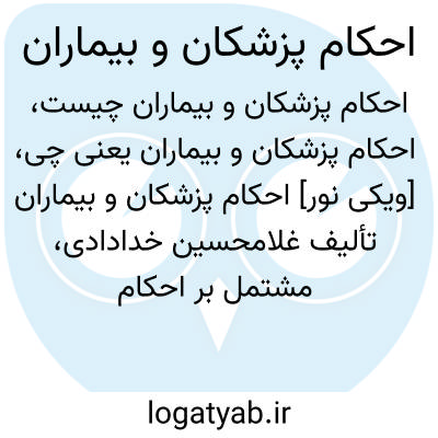 [ویکی نور] احکام پزشکان و بیماران تألیف غلامحسین خدادادی، مشتمل بر احکام فقهی مطابق با فتاوای آیت الله محمد فاضل لنکرانی به زبان فارسی است.