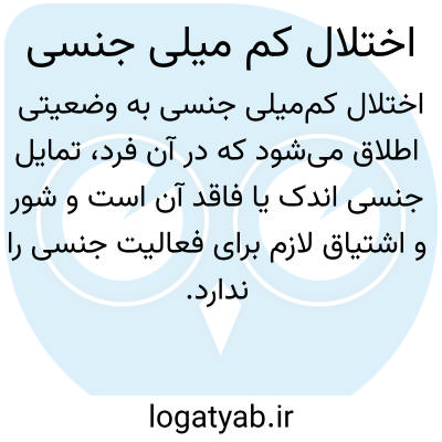 {hypoactive sexual desire disorder} [روان شناسی] کاستی یا فقدان پایدار میل و فعالیت جنسی