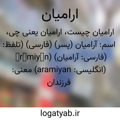 اسم: آرامیان (پسر) (فارسی) (تلفظ: ārāmiyān) (فارسی: آراميان) (انگلیسی: aramiyan)
