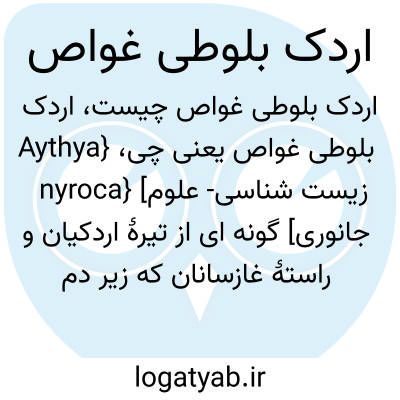 {Aythya nyroca} [زیست شناسی- علوم جانوری] گونه ای از تیرۀ اردکیان و راستۀ غازسانان که زیر دم آن کاملاً سفید است و جنس نر آن بدنی خرمایی تیره با چشم هایی سفید دارد