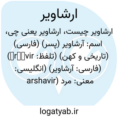 اسم: آرشاویر (پسر) (فارسی) (تاریخی و کهن) (تلفظ: āršāvir) (فارسی: آرشاوير) (انگلیسی: arshavir)