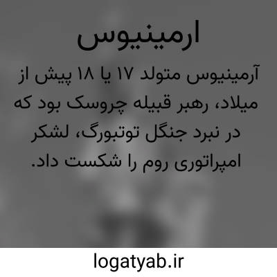 آرمینیوس. آرمینیوس یا هِرمان ( زاده ۱۸/۱۷ ( پیش از میلاد ) – مرگ: ۲۱ ( میلادی ) ) سرکرده چروسک ها بود که در نبرد جنگل توتبورگ یک لشکر امپراتوری روم را شکست داد. او پیوندی میان قبیله های ژرمن خاور راین پدید آورد که کوشش های ژرمانیکوس خواهرزاده امپراتور تیبریوس را برای بازچیرگی بر آن سرزمین ها را نافرجام گذارد. اگرچه سرانجام آرمینیوس در همپیمان نگاه داشتن قبیله های ژرمن ناکام ماند، ولی پیروزی باورنکردنی او در آینده بر تاریخ ژرمن های باستان و امپراتوری روم و سرانجام اروپا اثرگذار بود.
