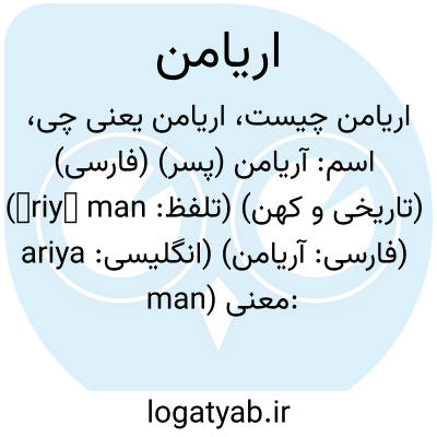 اسم: آریامن (پسر) (فارسی) (تاریخی و کهن) (تلفظ: āriyā man) (فارسی: آريامن) (انگلیسی: ariya man)
