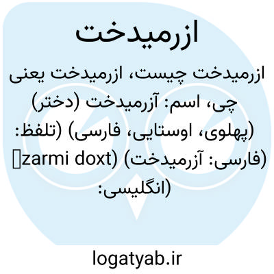 اسم: آزرمیدخت (دختر) (پهلوی، اوستایی، فارسی) (تلفظ: āzarmi doxt) (فارسی: آزرميدخت) (انگلیسی: azarmi dokht)