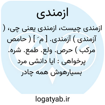 ( آزمندی ) حرص، ولع، بسیارخواهی: ایا دانشی مرد بسیار هوش / همه چادر آزمندی مپوش (فردوسی: ۱/۳۱۵ ).