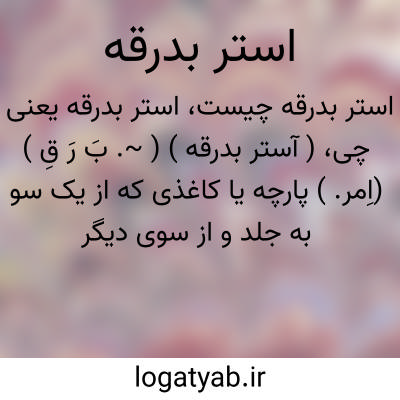 ( آستر بدرقه ) ( ~. بَ رَ قِ ) (اِمر. ) پارچه یا کاغذی که از یک سو به جلد و از سوی دیگر به نخستین صفحة کتاب و مانند آن می چسبد.