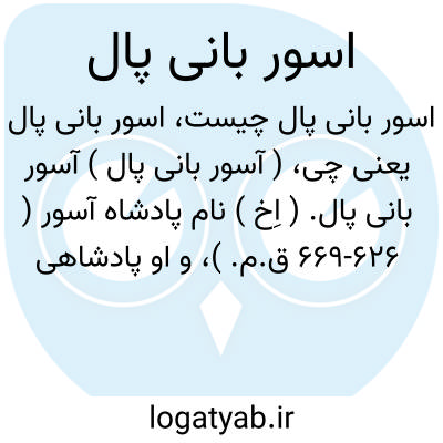 ( آسور بانی پال ) آسور بانی پال. ( اِخ ) نام پادشاه آسور ( 669-626 ق.م. )، و او پادشاهی مقتدر و سلحشور بوده و مملکت بابل و ایلام را تسخیر کرده است.، اسوربانیپال. [ اَ ] ( اِخ ) آشوربانی پال. رجوع به آسوربانی پال و یشتها تألیف پورداود ج 1 ص 79 و فرهنگ ایران باستان تألیف پورداود ص 141 شود.، اسوربانیپال. [ اَ ] ( اِخ ) آشوربانی پال. رجوع به آسوربانی پال و یشتها تألیف پورداود ج 1 ص 79 و فرهنگ ایران باستان تألیف پورداود ص 141 شود.