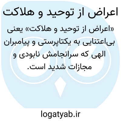 «اعراض از توحید» به معنای روی گرداندن و بیتوجهی به یکتاپرستی و ایمان به خداوند یکتا است. این اصطلاح در قرآن کریم به عنوان مصداق لجاجت و سرپیچی از حقایق الهی مطرح شده است. اعراض از توحید در کنار کفر و نافرمانی، پیامدهایی مانند هلاکت و عذاب دنیوی و اخروی دارد. قرآن داستانهای پیامبران مانند نوح، هود و صالح را مثال میزند که قومشان در برابر دعوت توحیدی آنان لجوج بودند. این مردم با بهانهگیری، تکیه بر سنت نیاکان و انکار معجزات، از پذیرش حقیقت سر باز زدند. پیامبران تلاش کردند با دلایل روشن و معجزات آشکار مردم را هدایت کنند، اما بسیاری همچنان اعراض کردند. خداوند در آیات مختلف آنان را با صاعقه، زلزله و دیگر عذابها تهدید کرد تا عواقب نافرمانی مشخص شود. اعراض از توحید نه تنها موجب نابودی فرد بلکه به هلاکت نسل و جامعه نیز منجر میشود. این رفتار از دیدگاه دینی نکوهش الهی و محکومیت شدید دارد و نشانه قساوت قلب و بیبصیرتی است. قرآن تأکید میکند کسانی که از توحید اعراض میکنند، با وجود دیدن نشانههای روشن، گرفتار ذلت، بدبختی و عذاب میشوند.