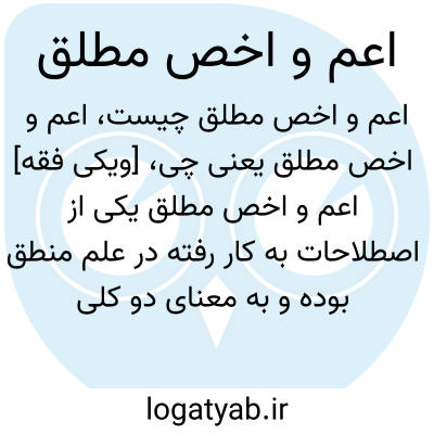 [ویکی فقه] اعم و اخص مطلق یکی از اصطلاحات به کار رفته در علم منطق بوده و به معنای دو کلی با صدق یکی بر همه افراد دیگری و صدق دیگری بر بخشی از افراد اولی است.