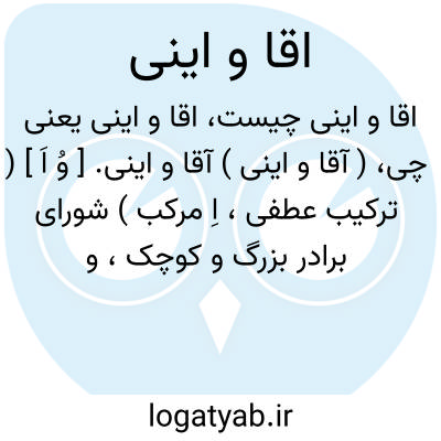 ( آقا و اینی ) آقا و اینی. [ وُ اَ ] ( ترکیب عطفی، اِ مرکب ) شورای برادر بزرگ و کوچک، و توسعاً، مجمع و شورای شاهزادگان.
