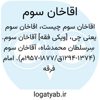 [ویکی فقه] آقاخان سوم. سِرسلطان محمدشاه، آقاخان سوم (۱۲۹۴-۱۳۷۴ق/۱۸۷۷-۱۹۵۷م). امام فرقه اسماعیلیان بود.