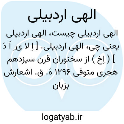الهی اردبیلی. [ اِ لا ی ِ اَ دَ ] ( اِخ ) از سخنوران قرن سیزدهم هجری متوفی 1296 هَ. ق. اشعارش بزبان ترکی است. ( حدیقة الشعراء، از دانشمندان آذربایجان ). و رجوع به الذریعة ذیل دیوان حکیم الهی اردبیلی شود.