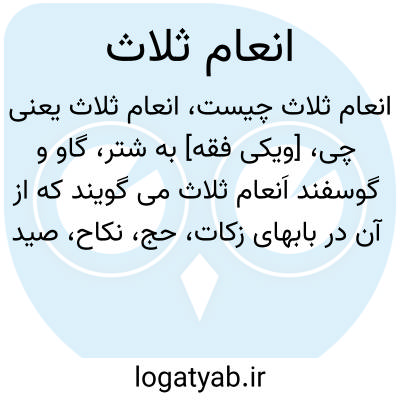 [ویکی فقه] به شتر، گاو و گوسفند اَنعام ثلاث می گویند که از آن در بابهای زکات، حج، نکاح، صید و ذباحه و اطعمه و اشربه سخن رفته است.