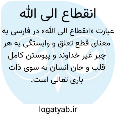 عبارت «انقطاع الی الله» در فارسی به معنای قطع تعلق و وابستگی به هر چیز غیر خداوند و پیوستن کامل قلب و جان انسان به سوی ذات باری تعالی است. این مفهوم بیانگر حرکتی باطنی و روحانی است که انسان سالک طی آن، به تدریج تعلقات دنیوی، وابستگی‌های مادی و نفسانی و هرگونه تمایل به غیر خدا را از قلب خود می‌زداید و تنها به خداوند یگانه و منزه متوجه می‌شود. انقطاع الی الله نه یک حرکت فیزیکی در مکان و زمان، بلکه سیر معنوی و فوق‌مکانی است که بر اساس آن، سالک تمام افکار، نیازها و آرزوهای خود را در مسیر قرب الهی قرار می‌دهد. این مقام از بالاترین درجات معنوی و روحانی در عرفان اسلامی به شمار می‌رود و هدف نهایی عبادات، دعاها، ذکرها و سایر تلاش‌های انسان در مسیر تهذیب نفس و خودسازی است. قرآن کریم و احادیث اهل بیت (ع) بر این امر تأکید دارند و پیامبر و ائمه اطهار (ع) را به دستیابی به این حالت توصیه کرده‌اند. انقطاع الی الله شامل توجه کامل به پروردگار، ترک وابستگی به مخلوقات و روی آوردن به خداوند با خلوص نیت است. این حالت باعث می‌شود لذت و آرامش واقعی انسان در یاد خداوند حاصل شود و هیچ چیز دیگر نتواند دل او را مشغول کند.