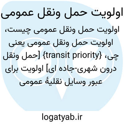 {transit priority} [حمل ونقل درون شهری-جاده ای] اولویت برای عبور وسایل نقلیۀ عمومی ازطریق تنظیم و فرماندهی چراغ های راهنمایی به نحوی که زمان انتظار در تقاطع برای این وسایل به صفر یا به حداقل ممکن برسد