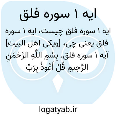 [ویکی اهل البیت] آیه 1 سوره فلق. بِسْمِ اللَّهِ الرَّحْمَٰنِ الرَّحِیمِ قُلْ أَعُوذُ بِرَبِّ الْفَلَقِ
