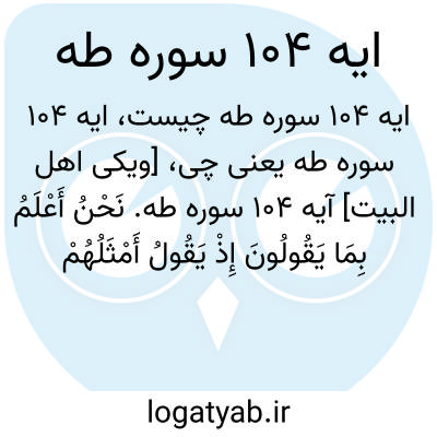 [ویکی اهل البیت] آیه 104 سوره طه. نَحْنُ أَعْلَمُ بِمَا یَقُولُونَ إِذْ یَقُولُ أَمْثَلُهُمْ طَرِیقَةً إِنْ لَبِثْتُمْ إِلَّا یَوْمًا