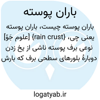 {rain crust} [علوم جَوّ] نوعی برف پوسته ناشی از یخ زدن دوبارۀ بلورهای سطحی برف که بارش باران آنها را ذوب یا نم دار کرده است