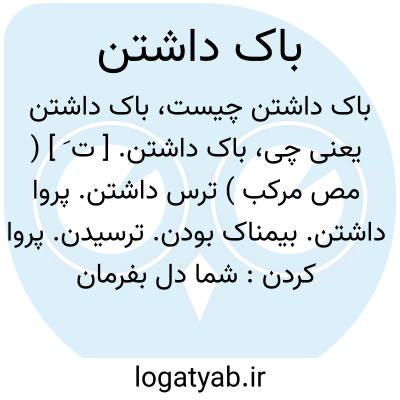 باک داشتن. [ ت َ ] ( مص مرکب ) ترس داشتن. پروا داشتن. بیمناک بودن. ترسیدن. پروا کردن: