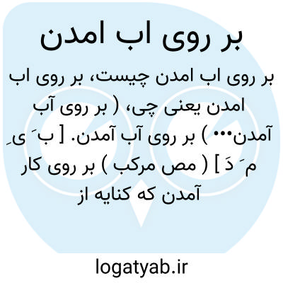 ( بر روی آب آمدن••• ) بر روی آب آمدن. [ ب َ ی ِ م َ دَ ] ( مص مرکب ) بر روی کار آمدن که کنایه از ظاهر شدن باشد.